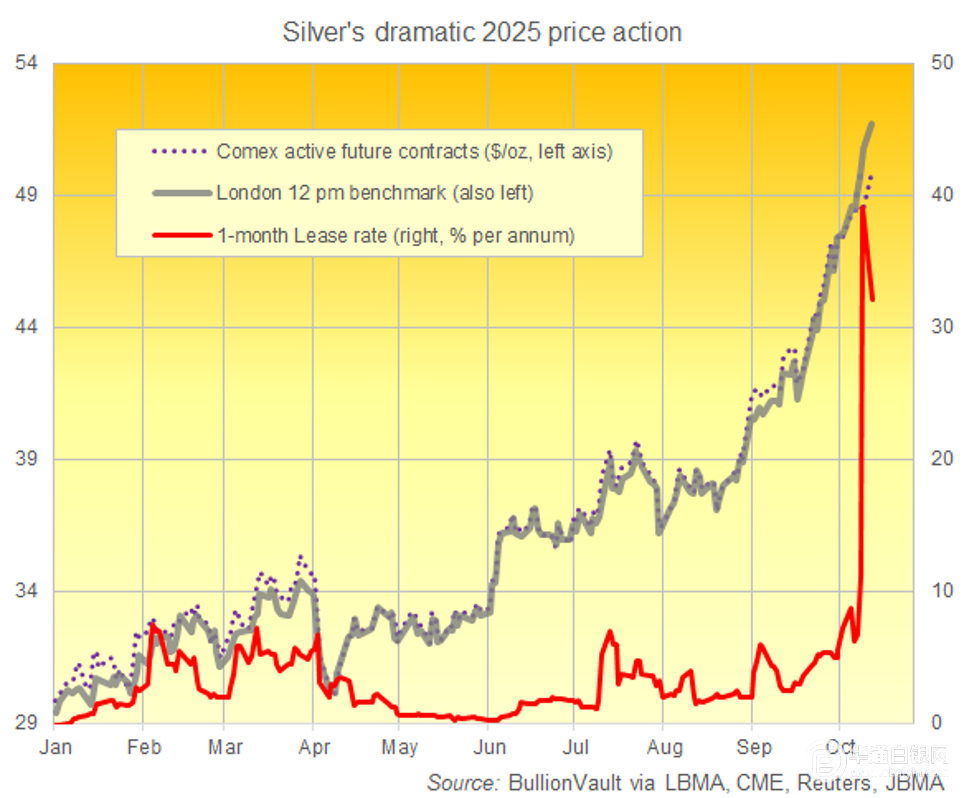 经纪公司StoneX Group Inc.的Rhona O'Connell表示:“对关税的紧张情绪一直使美国的白银保持在高位。”她指出,这些担忧,以及印度排灯节的强劲需求和飙升的借贷利率,是白银市场飙升背后的原因。