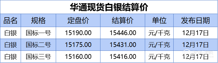 上海华通现货白银结算价:一号国标、二号国标、三号国标如下: