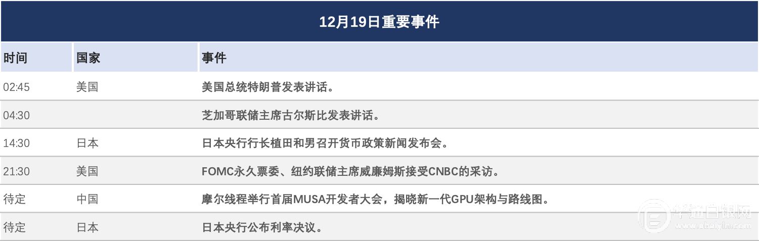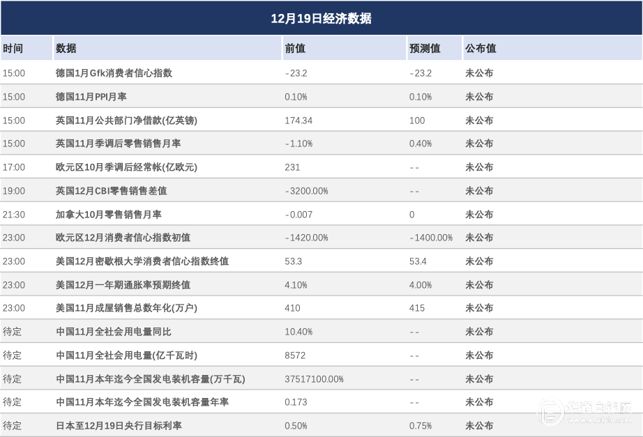 【华通白银网12月19日】•美国通胀数据走软后,市场预期美联储将降息,金价持稳。